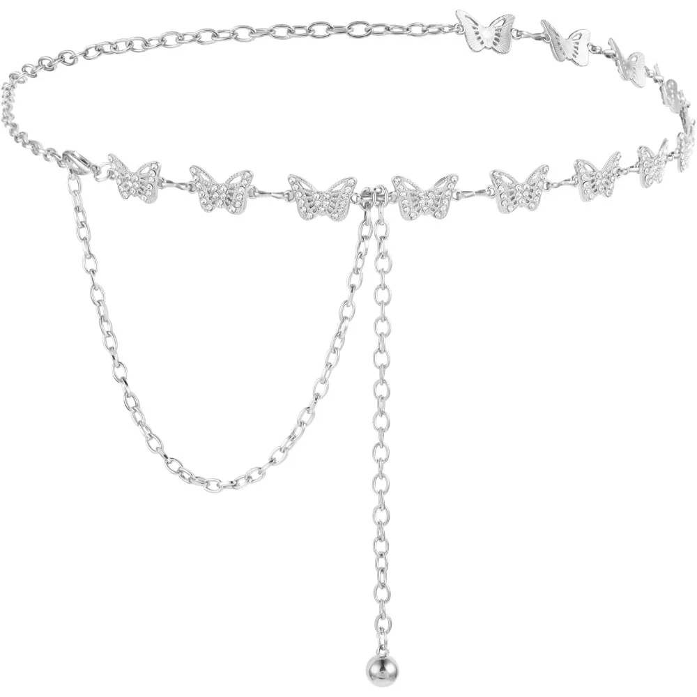 Women Butterfly Waist Chain Belt, Metal Rhinestones Waist Belts Women Dress Belts Body link Chain Belt for Girl Women