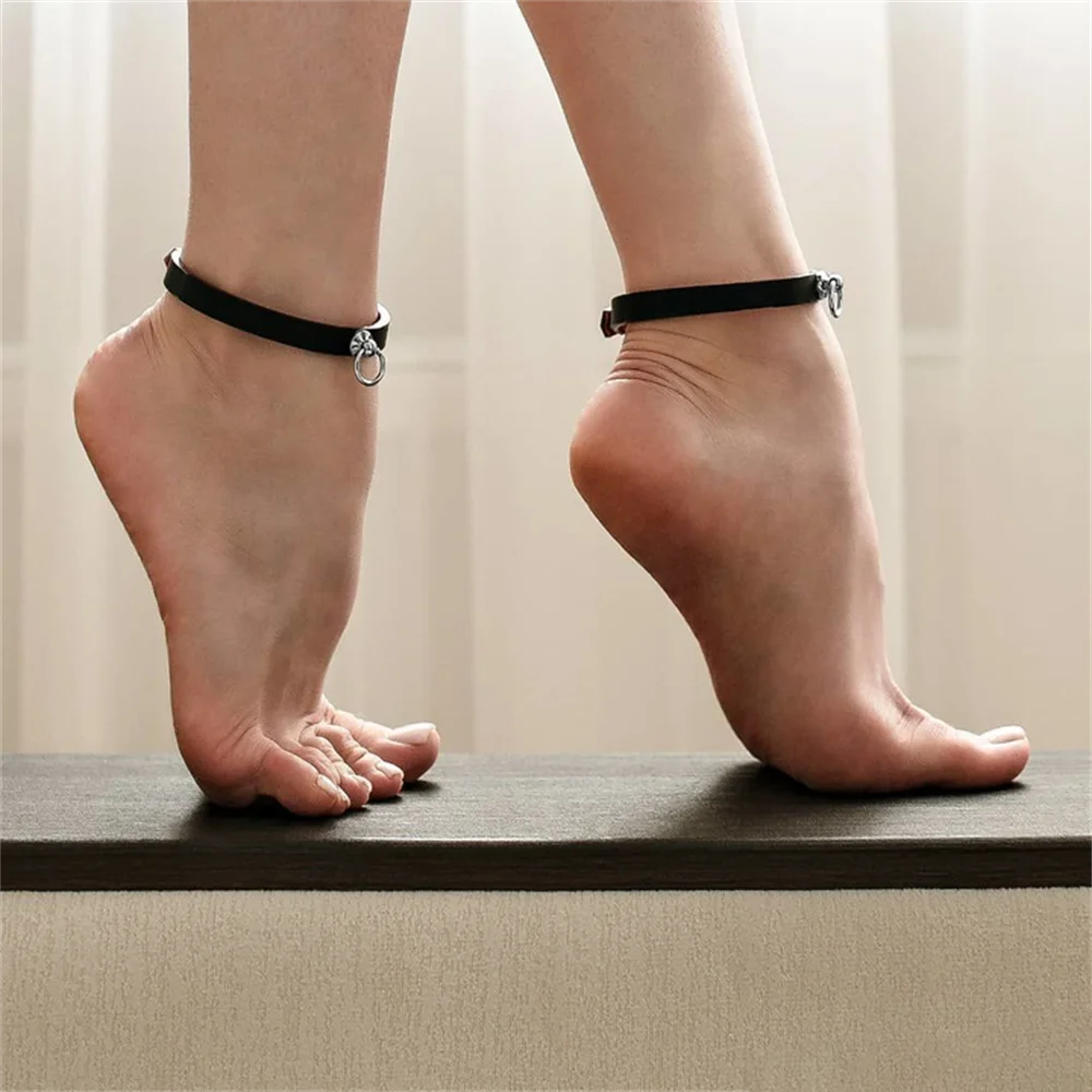 Ankle Belt Black O-Ring Ankle Punk Leather Feather Anklet Men's Women Alloy Pendant Accessories YK2 Ankle Belt