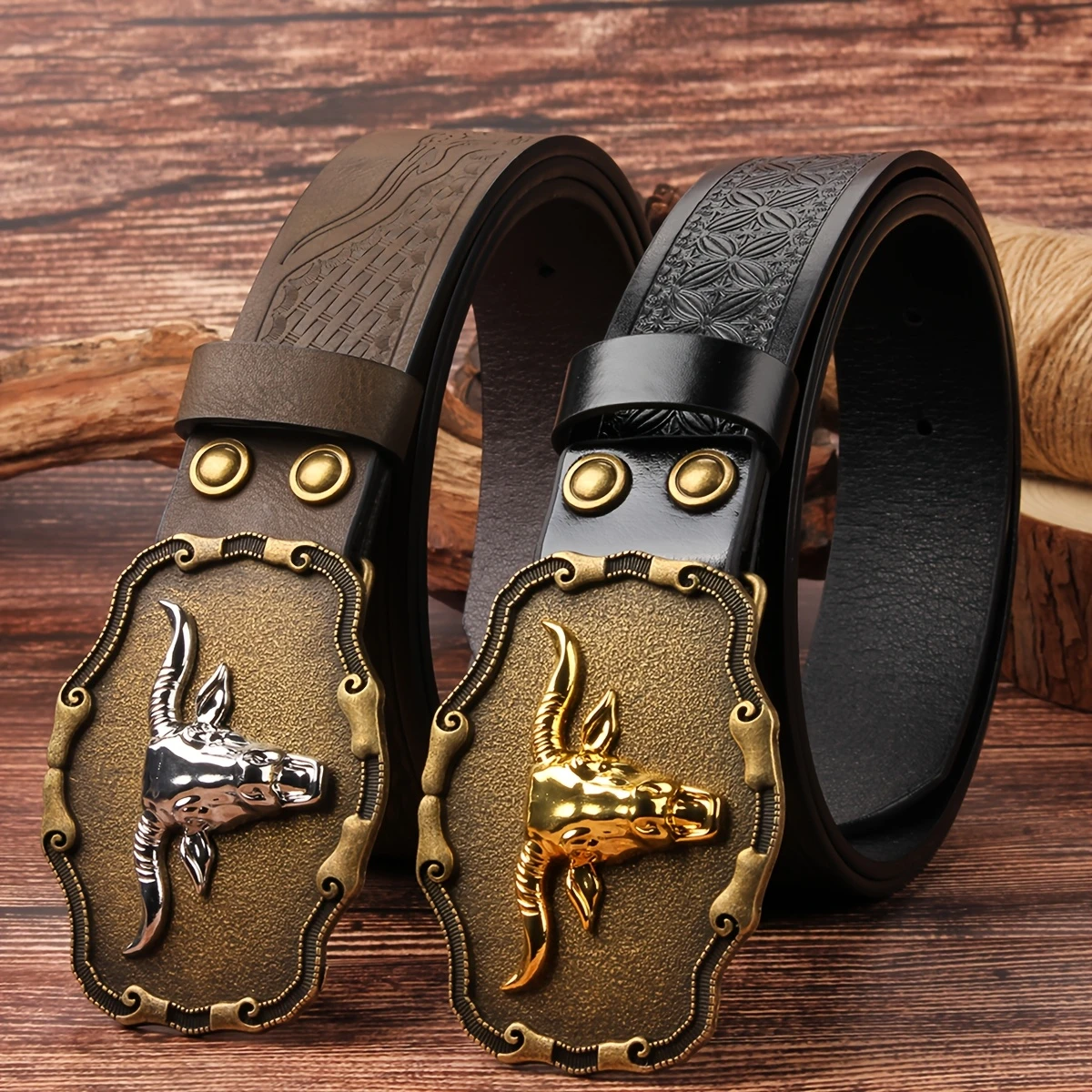 Golden Head Big bull head 3.7cm wide men's and women's Western bull head denim style bull scalprendy belt smooth punk buckle