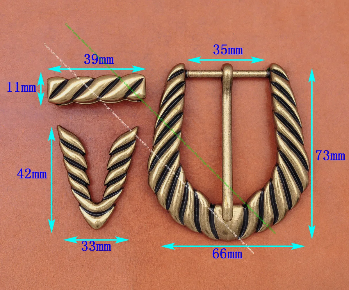 Brass Plated Western Rodeo Cowboy Leathercraft Flower Engraved DIY 3 Piece Set Belt Buckle fit 35mm Belt Strap