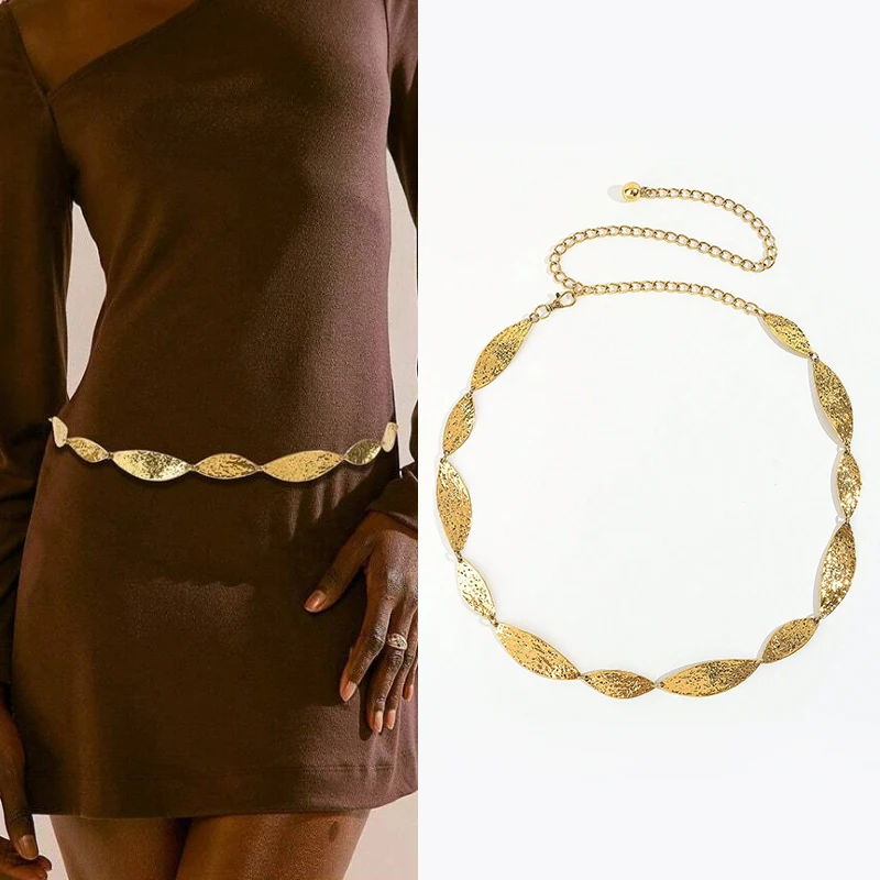 Fashion Golden Female Waist Chain Belt Western cowgirl leaf punk Metal Belts For Women Luxury Silver Waistband for summer beach