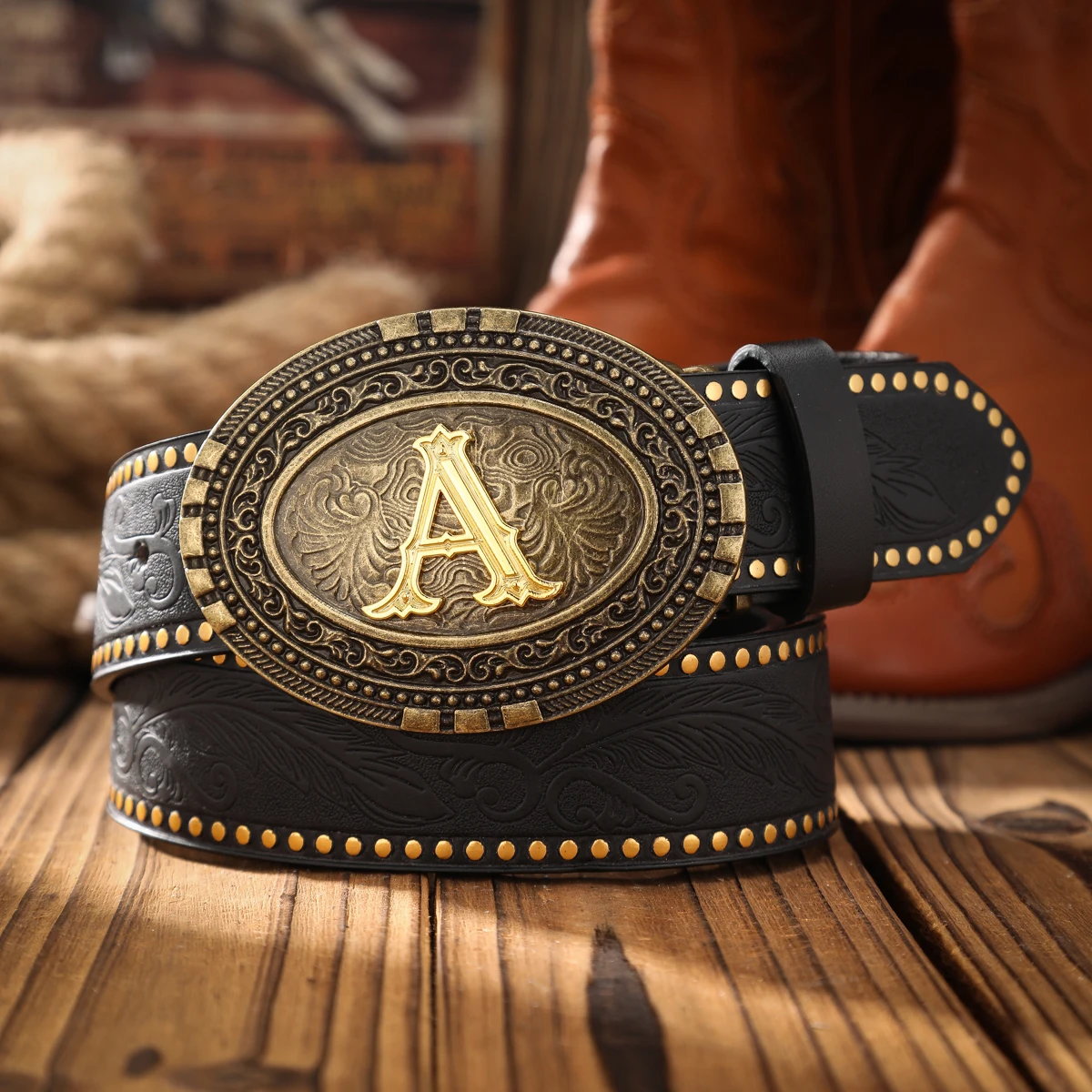 An alloy plate buckle PU material belt, suitable for both men and women, to create a personalized Western retro style