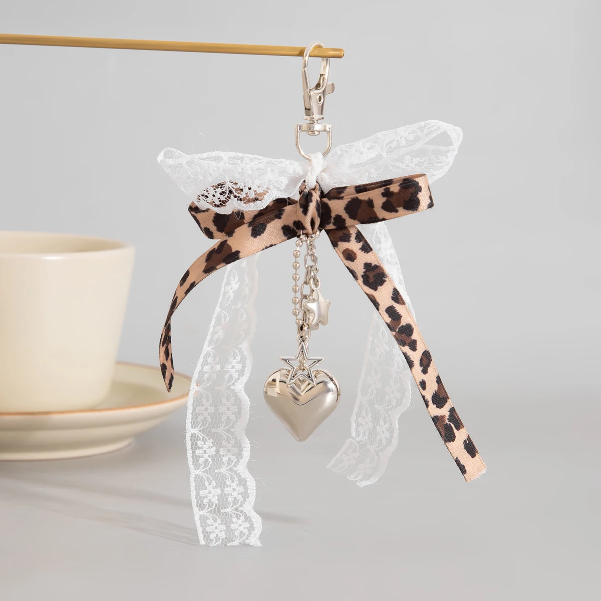 Lacteo Romantic Lace Webbing Bow Key Chain for Women Men Belt Pants Lobster Claw Button Heart Pendant Daily Key Anti Loss Chain  Read more
