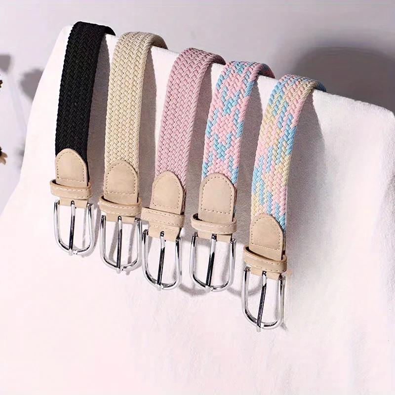 Punch-Free Belt Women's All-Matching Jeans Canvas Belt Woven Elastic Stretch Pin Buckle Student Lazy Woven Belt