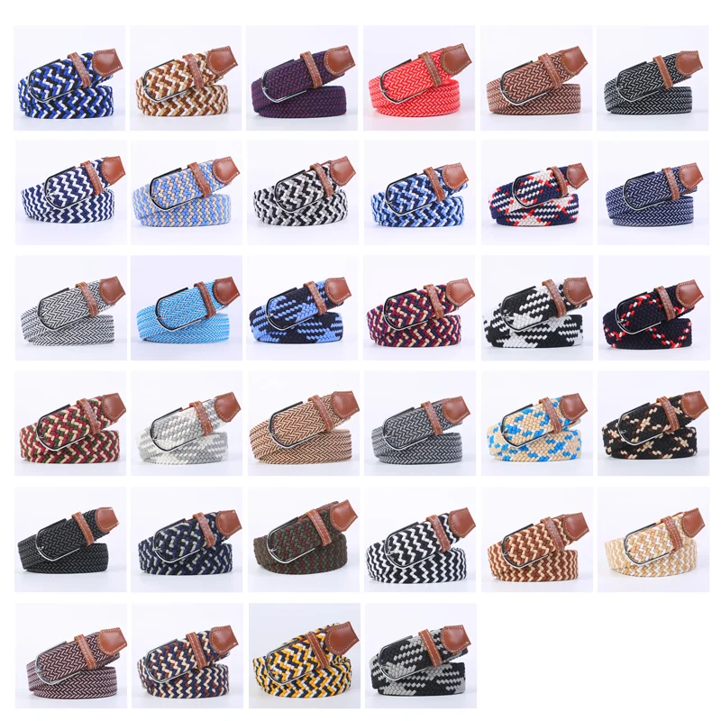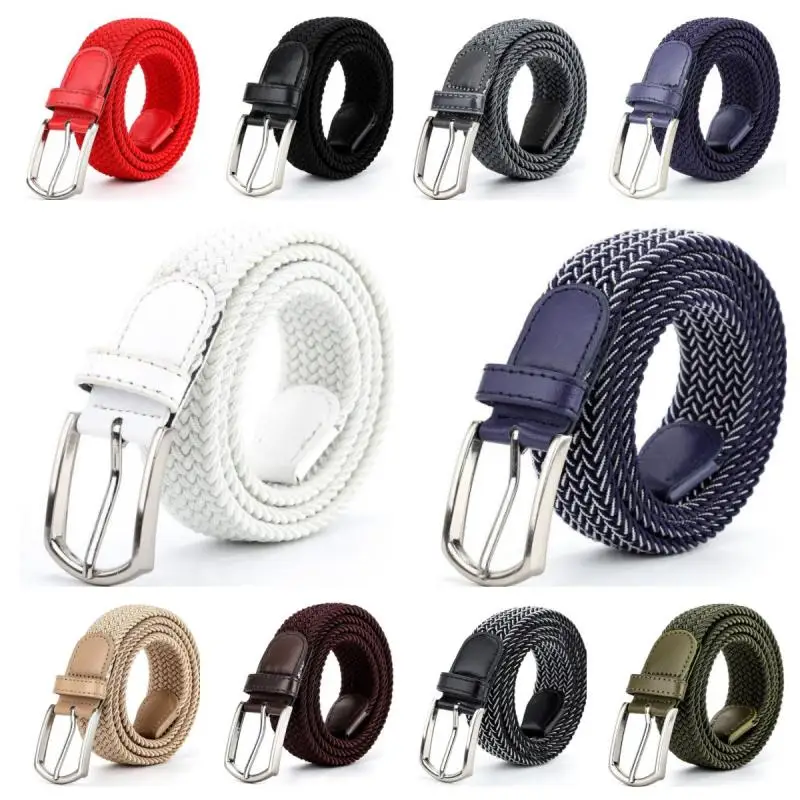 100cm Casual Knitted Pin Buckle Men Belt Woven Canvas Elastic Expandable Braided Stretch Belts For Women Jeans Female Belt  Read more