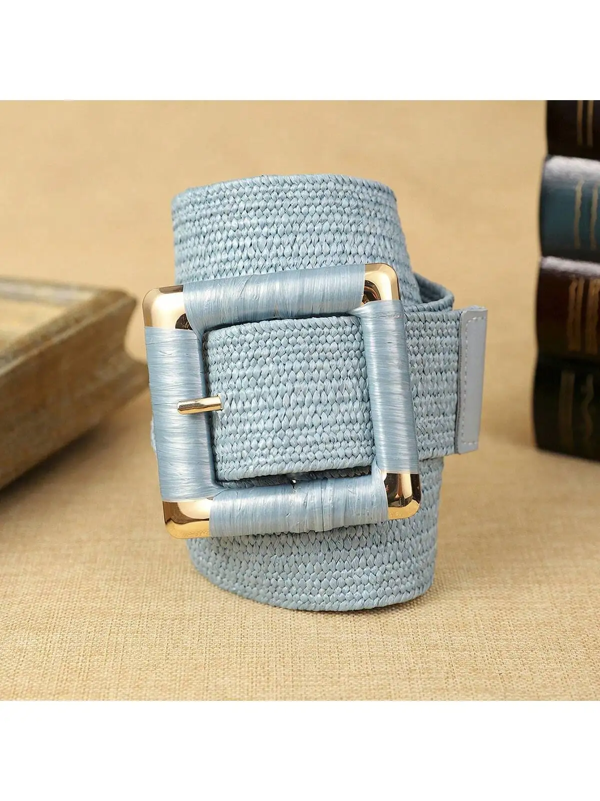 Fashion Bohemian Waist Belt Wide Braided Waistbelt Women Straw Belt Buckle Elastic Female Straw Waist Belt