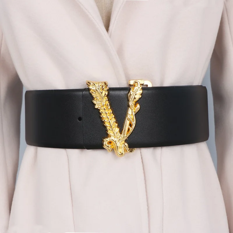 Width 6.5CM Waist Belt Women Metallic Gold Large V-shaped Cowhide Decoration Versatile Fashion Commuter Dress Jacket Jeans Belt