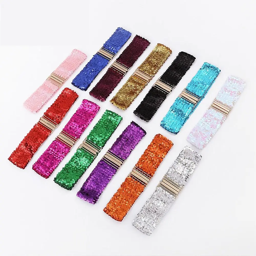 Sequin Elastic Glitter Belt Women's Corset Wide Waist Belt Metal Buckle Waistband Decorative Corset Strap Party Dress Accessorie