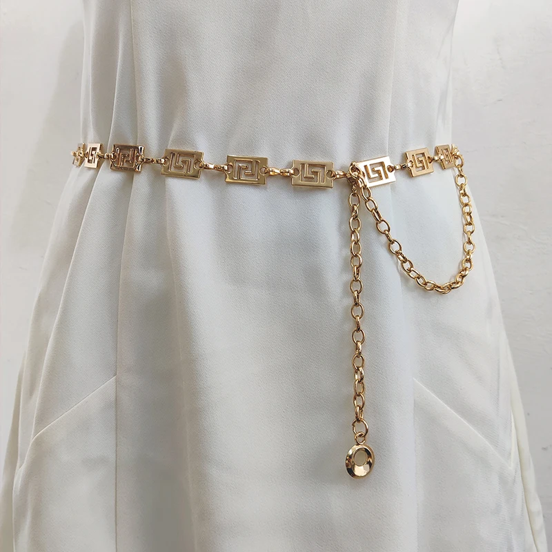 "Retro Style Women's Metal Waist Chain Accessories Decorative Golden Chain belt Goth Silver Waistband Adjustable Belts "