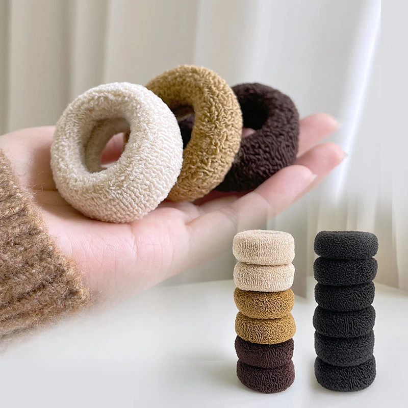 6pcs/bag Korean High Elastic Hair Bands Thick Hair Rope Ring Updo Ties Headwear Girls Kids Women Girls Hair Styling Accessories