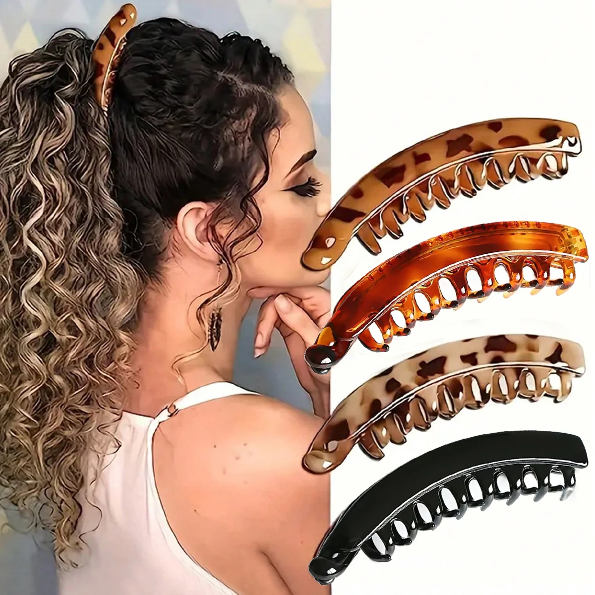 1pc Women's large leopard print Banana Clip Twister Clip Back of head,touch without trace,vertical clip High ponytail hair clip