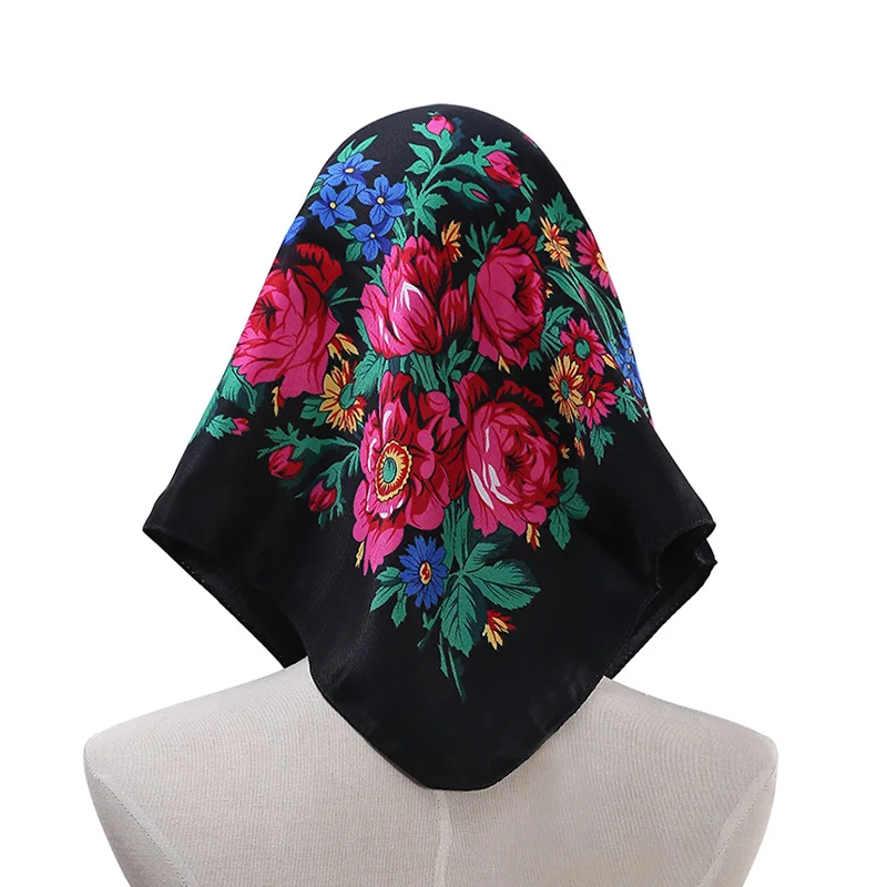 70*70cm Russian Style Floral Printed Women's Square Scarf Lady Bandana Handkerchief Ukrainian Shawl Babushka Headband Scarves