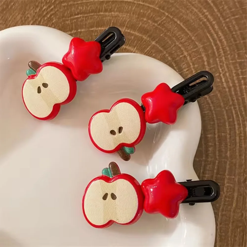 2Pc Cute Apple Hair Clip Star Duckbill Clip Sweet Girl Hair Pin Bangs Side Clip Woman Headwear Barrette Hair Accessories