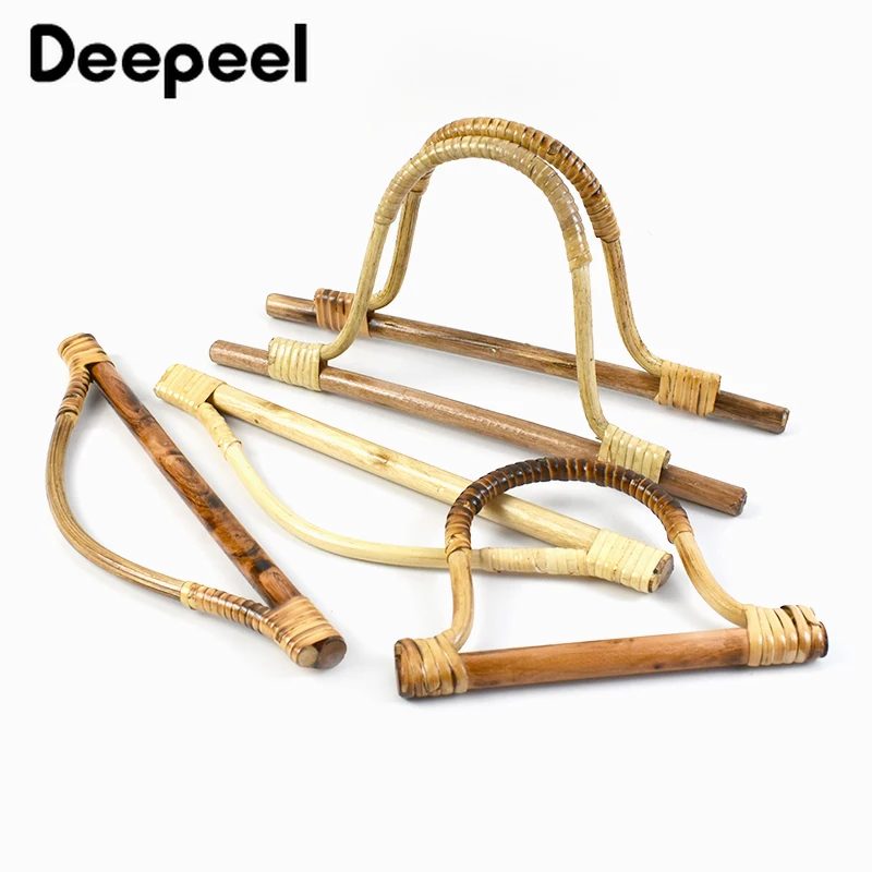 2Pcs Deepeel Rattan Bamboo D Ring Bag Handles Purse Frames DIY Handmade Sewing Brackets Bags Handle Handbag Wovenbag Accessories