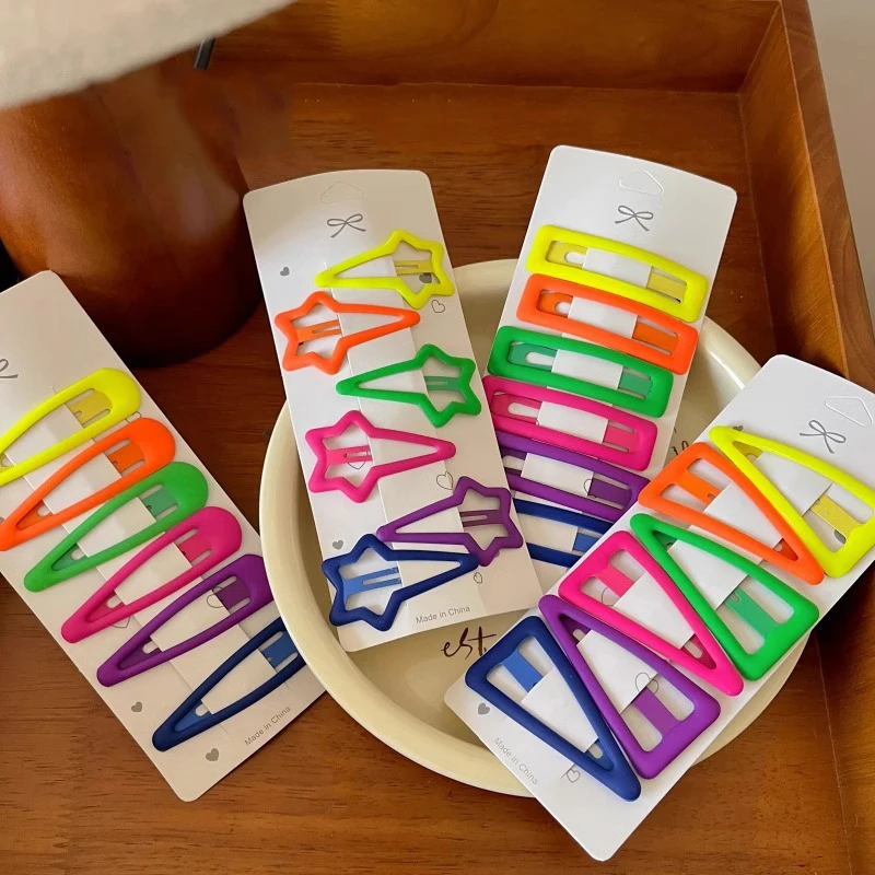 6pcs Neon Color Metal Hairpins Women Girls Geometric Big Size Hair Clips Spring Summer Bright Bobby Pins Barrettes Headwear