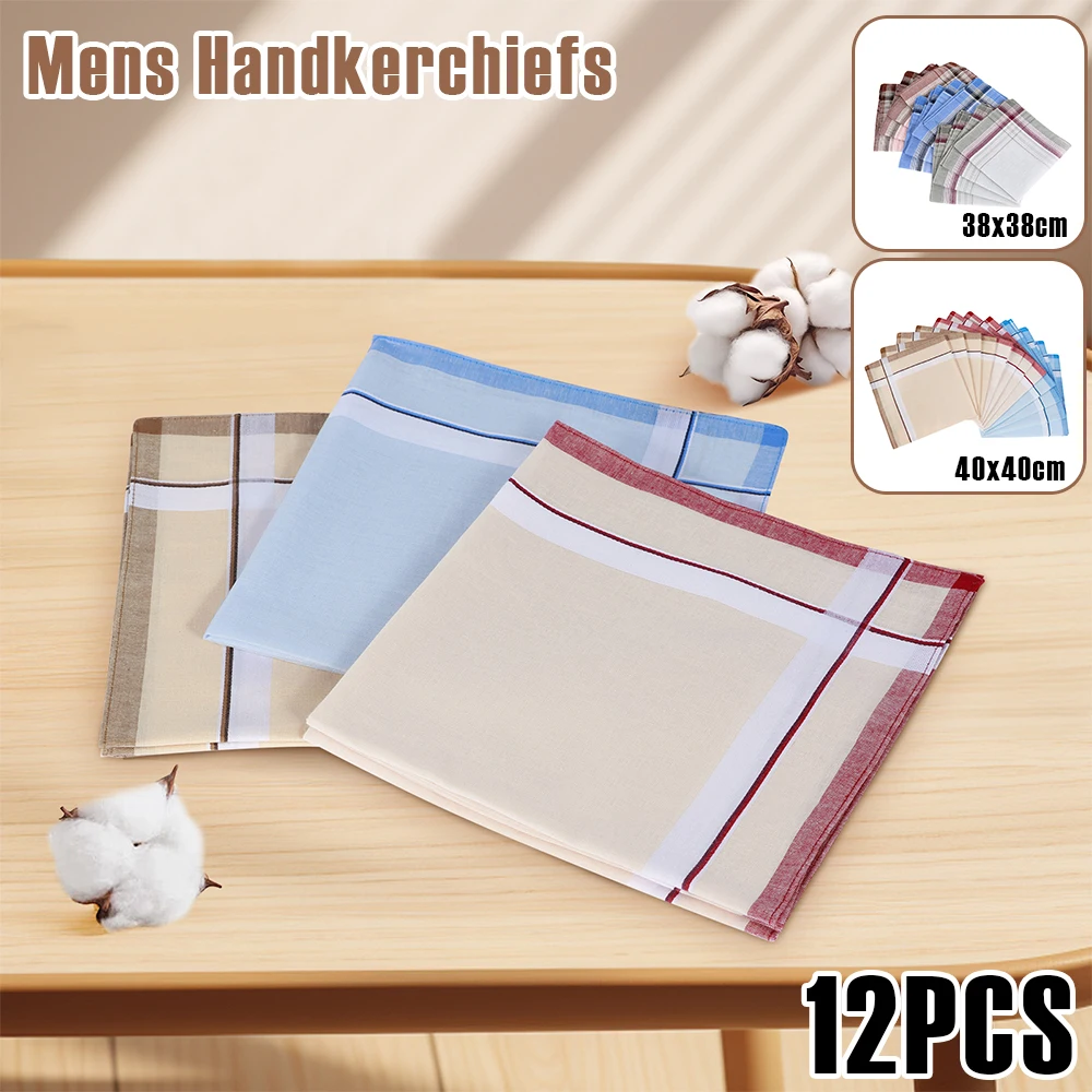 12Pcs Mens Handkerchiefs Cotton Square Plaid Hankies with 3 Styles Reusable Washable Pocket Handkerchiefs for Men Women Party