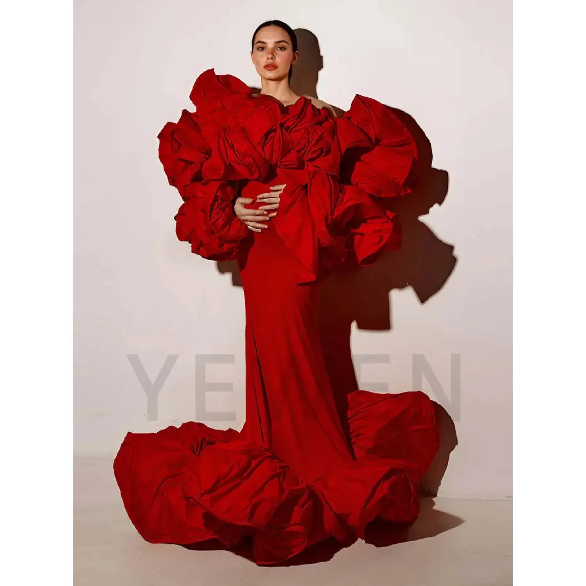 Couture Mermaid Maternity Dress for Photoshoot Unique Ruched Sleeves and Bottom Photography Dresses for Photo Shoot YW250050