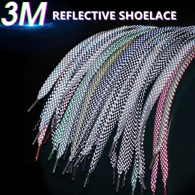 1Pair Reflective Laces Flat Shoelaces for Sneakers Colorful Reflective Shoe laces Luminous Shoelace 100/120/140/160CM Strings