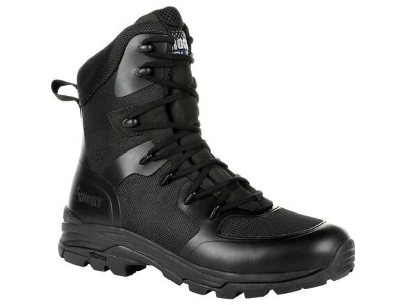 Rocky Boots Code Blue 8'' Public Service Boot - RKD0052BK8M. This Public Service Shoe Is Constructed With A Breathable Tactical Grade Mesh Upper High Abrasion Tpu Overlays And A Matt Finish For Added Structure Stability And Durability. This Shoes...  Read more
