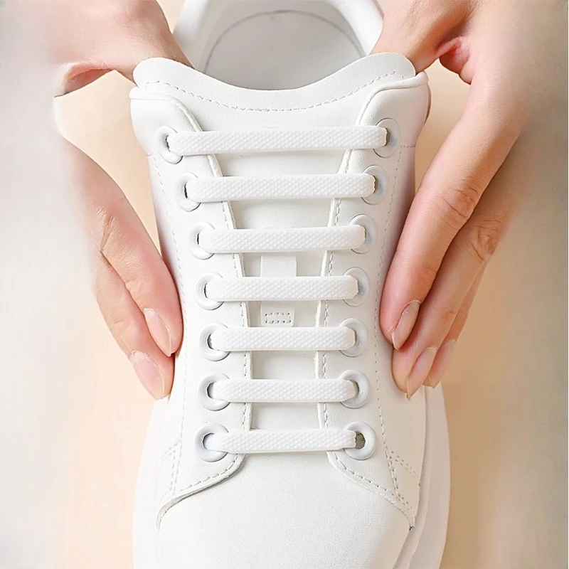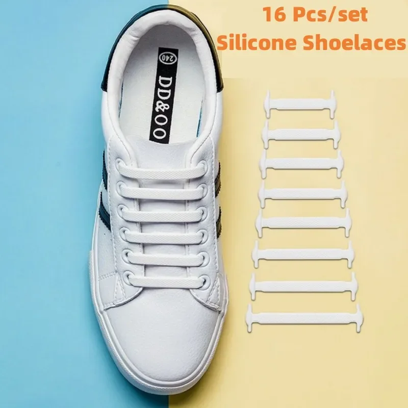 16Pcs/Pack White Silicone No Tie Shoe Laces Stretch Shoelaces For Sneakers Casual Shoes Sports Shoes Combat Boots