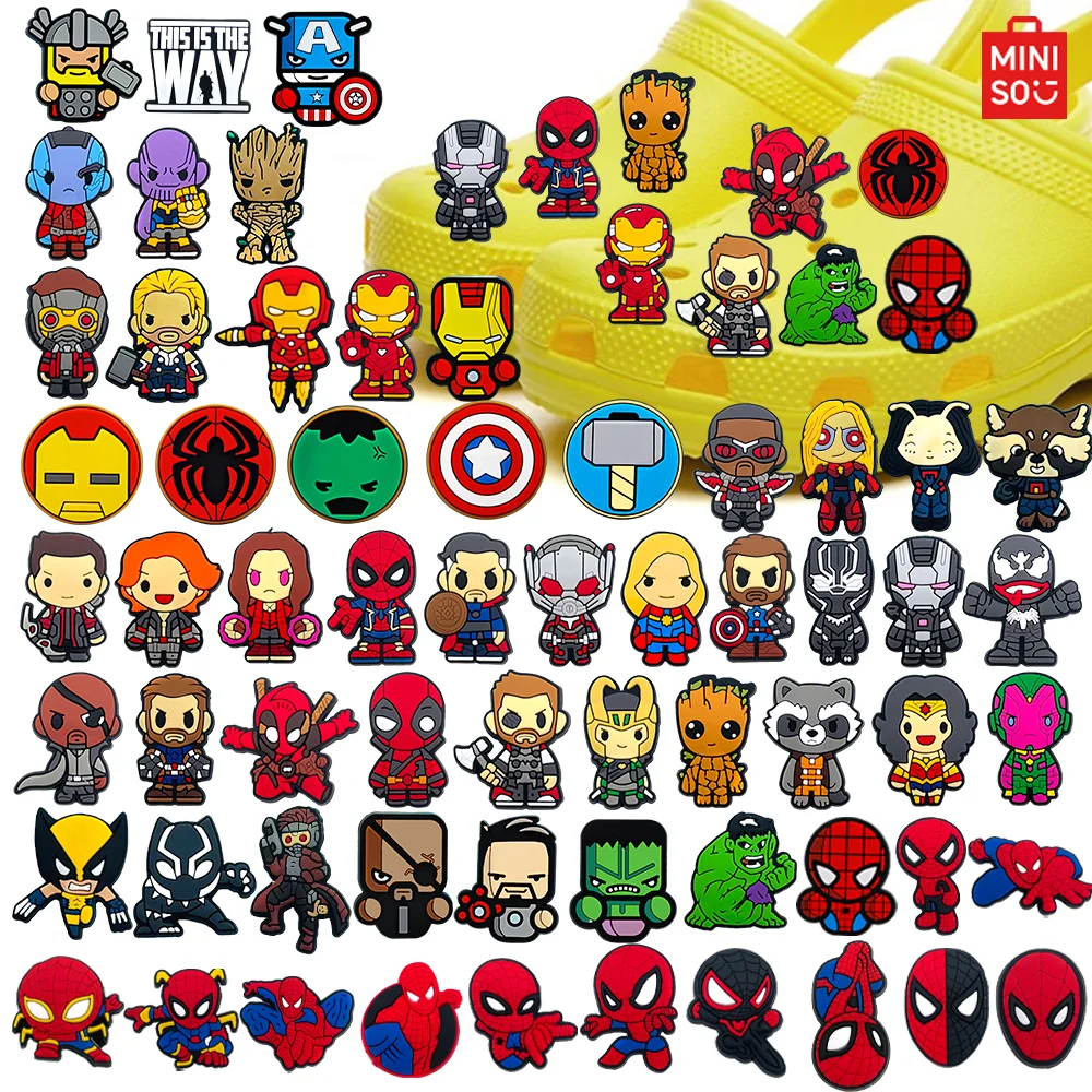 MINISO 1pcs cartoon Marvel superhero DIY shoe charms garden Accessories buckle fit clogs sandals pin decorate kid gift