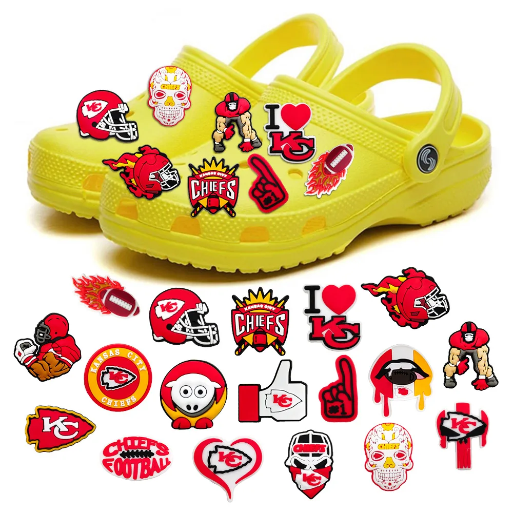 Fashion 1PCS Cartoon Red Series DIY Rugby Shoe Charms Accessories Decorate PVC clogs Boys Men Kids Adults X-mas Gifts