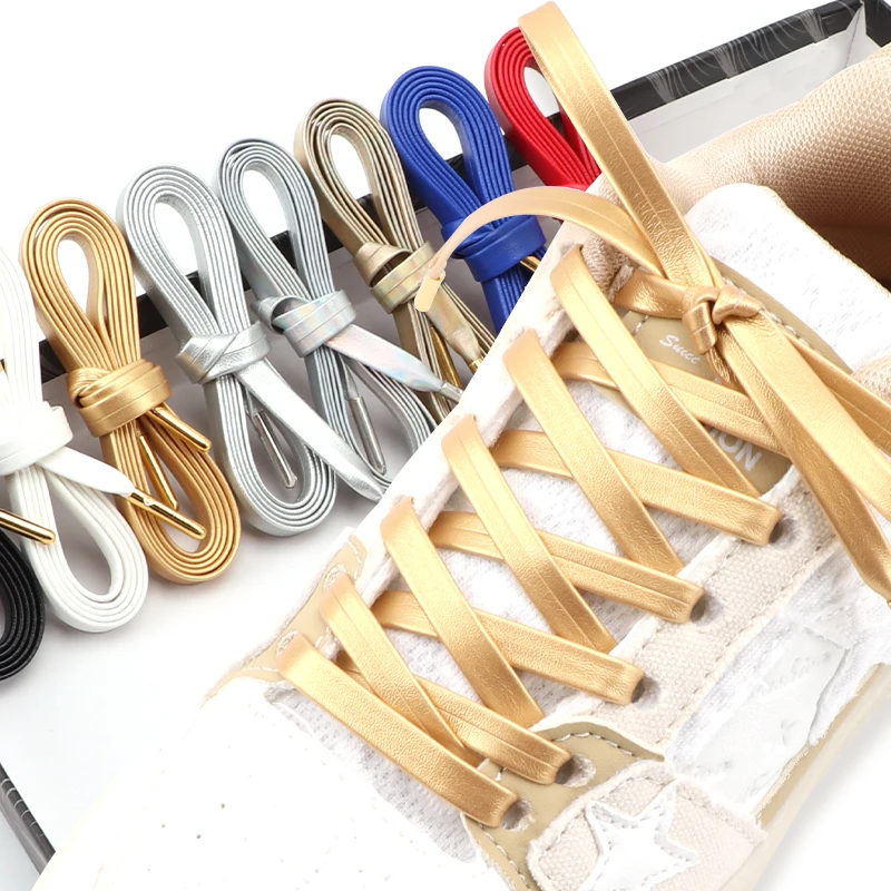 Leather Flat Shoelaces PU Metal Head Shoe LacesWaterproof Gold Silver Laser Reflective Shoelace for AF1 Sports Basketball Shoes  Read more