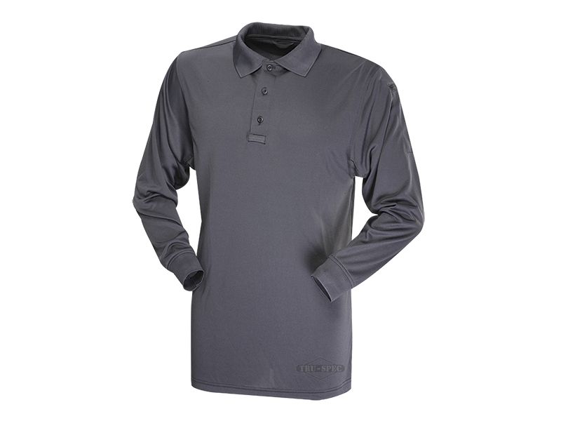 TRU-SPEC 24-7 Series Performance Long Sleeve Polo - Men's Charcoal 5XL Regular 4504010. These classic collared Tru-Spec polo shirts utilize a sturdy but comfortable micro knit pique fabric made from a 40/60 blend of polyester and cotton reinforced...  Read more
