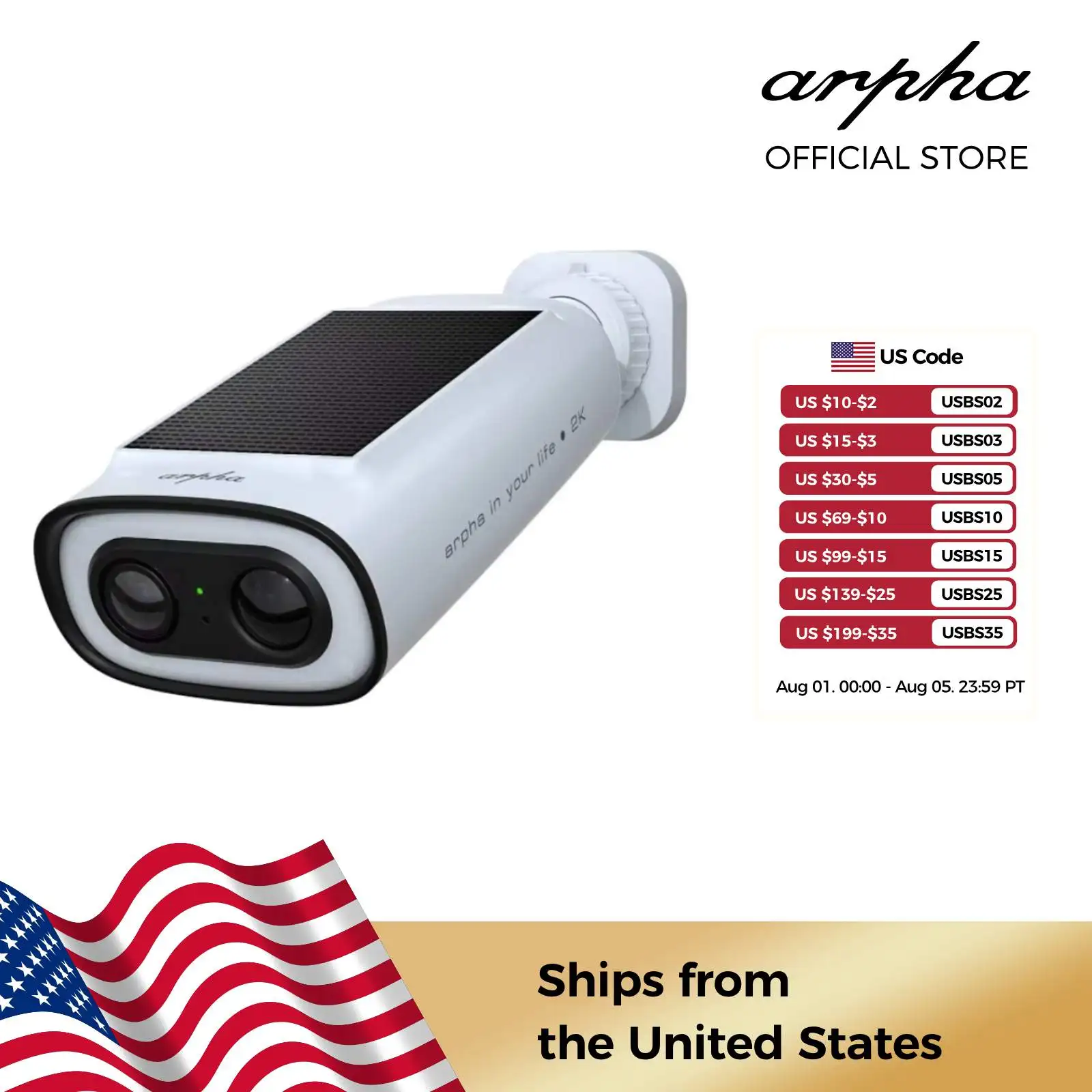 Arpha Security K06 SoloCam Outdoor Wireless Solar Camera 2K WiFi Camera with PIR Detection 10000mAh Removable Battery waterproof