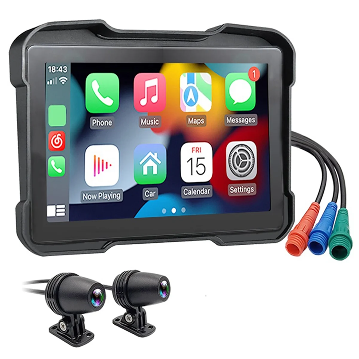 Motorcycle DVR Dash Cam Portable 5 Inch Wireless CarPlay Android Auto Screen GPS Navigation Waterproof Monitor