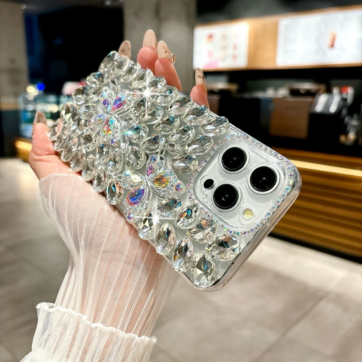 For iPhone 16 Pro Max, iPhone 14, and other models, there is a high - end and luxurious rhinestone - decorated phone case. It is