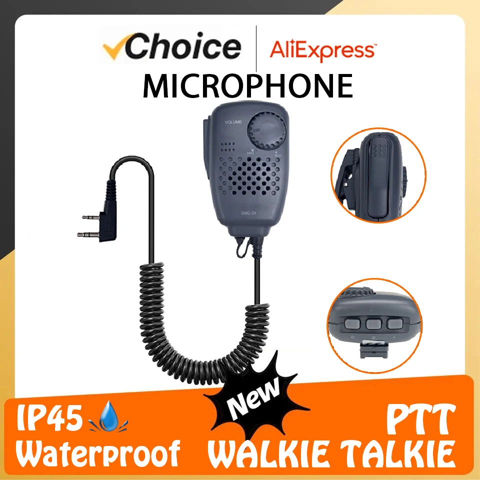 Walkie Talkie Microphone SMC-34 Speaker Mic K-Type PTT Adjustable Volume Control Compatible With Baofeng Kenwood WOUXUN TYT QYT