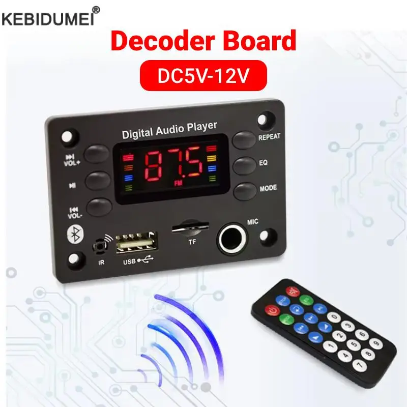 Bluetooth 5.0 MP3 Decoder Board DC 5V 12V DIY MP3 Player Car FM Radio Module TF USB Mic Record Call Handsfree control