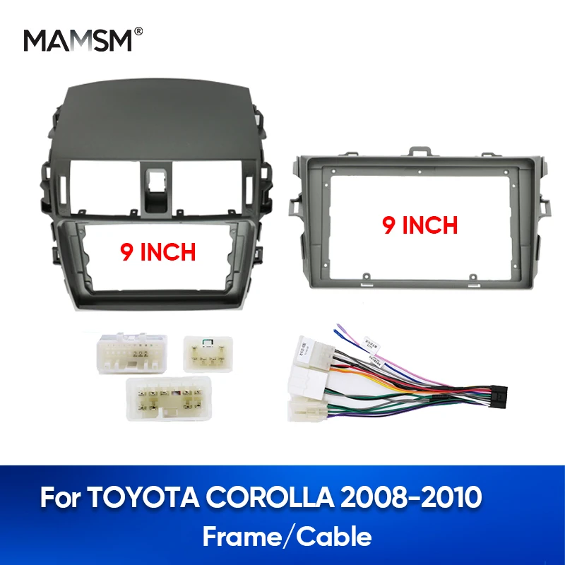 MAMSM 9INCH Car DVD Fascia Multimedia For TOYOTA 2008-2010 COROLLA 2 Din MP3 MP5 Video Audio Stereo Panel Frame Cables Harnes