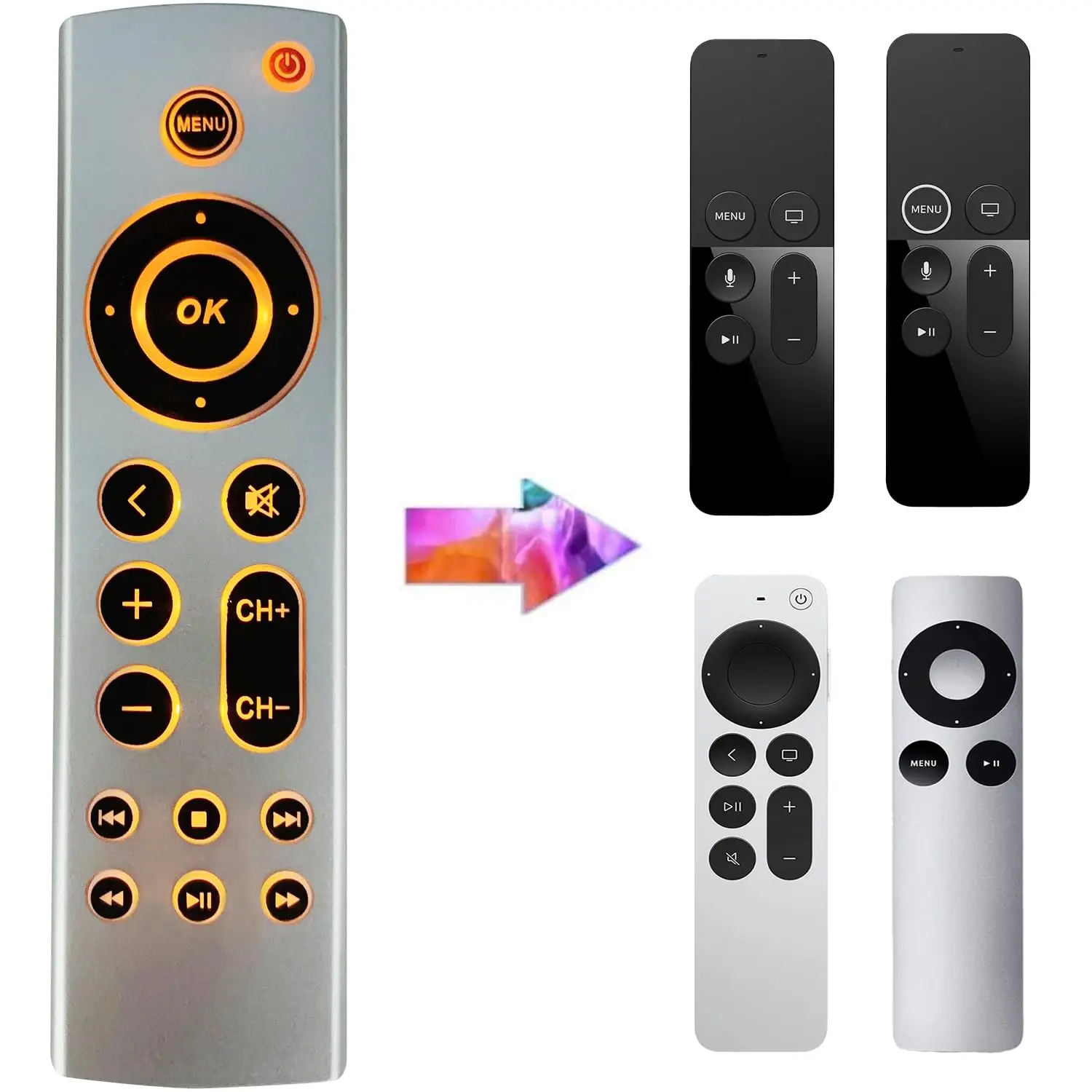 Universal Backlit Remote Replacement for Apple TV 4K/ Gen 1 2 3 4/HD A2843 A2737 A1625 A1427 A1469 A1378 A1218 No Voice Function