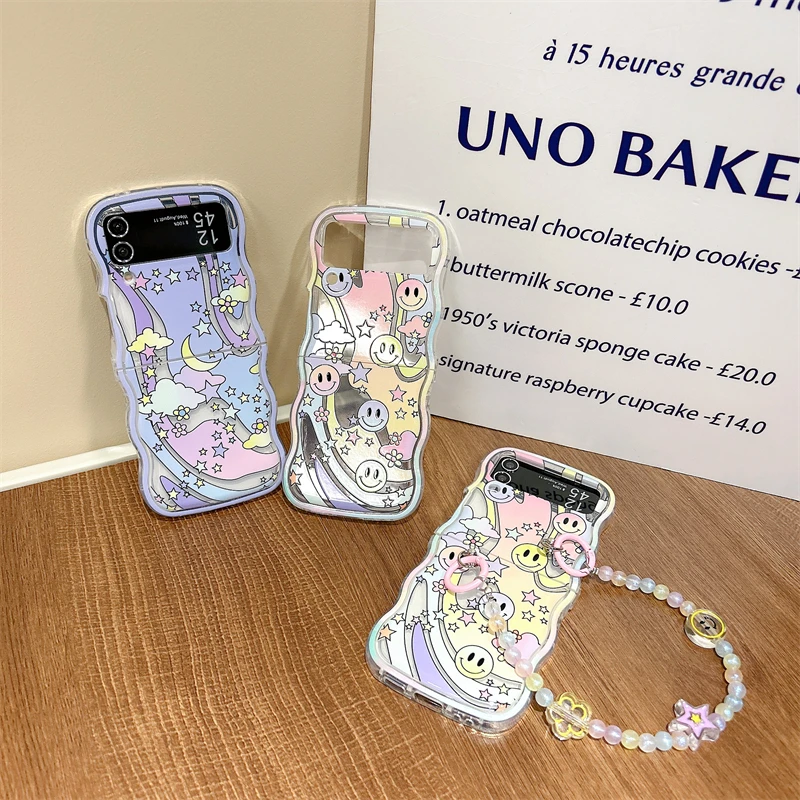 Korean Cute Moon Star Phone Case For Samsung Galaxy Z Flip 6 5 4 3 5G Cover With Chain Kawaii Cases For Flip4 Flip5 Flip6 5G