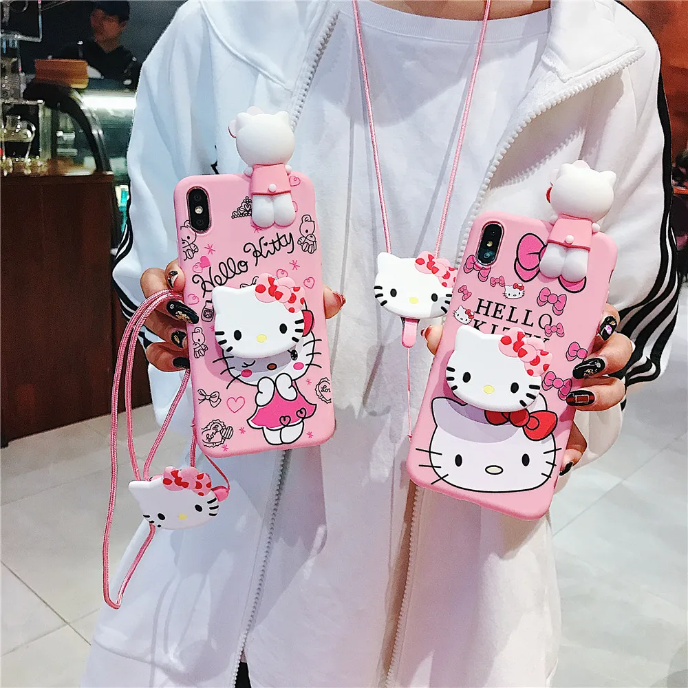Hello Kitty For Samsung Galaxy S8 S9 S10 S20 S21 S22 S23 S24 Plus Ultra S21FE Note 9 10 Case Case With Holder Rope