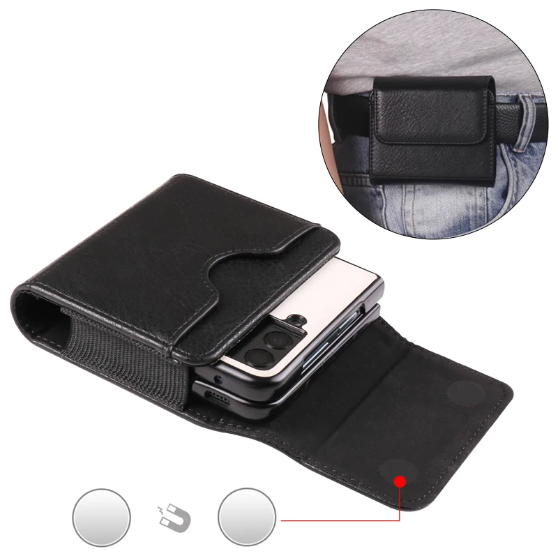 Belt Clip Holster Leather Pouch for Samsung Z Flip 3 Flip4 Flip5 Flip6 Universal Waist Bag Case Cover for Moto Razr 40/40ultra