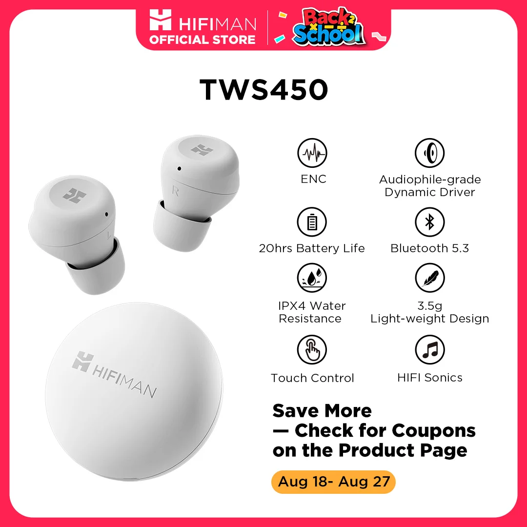 HIFIMAN TWS450 True Wireless Stereo Headset with Environmental Noise Cancellation & Audiophile-grade Dynamic Driver  Read more