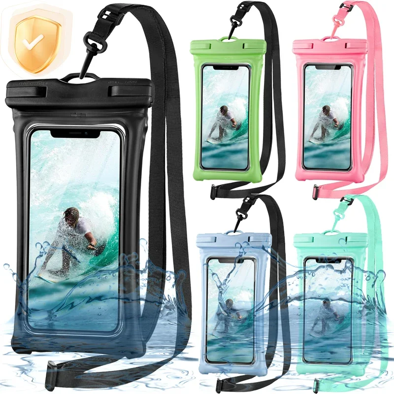 Universal Waterproof Phone Pouch Dry Bag Large IPX8 Cellphone Case with Lanyard for Diving Swimming Outdoor Sports 5.2-6.4 Inch