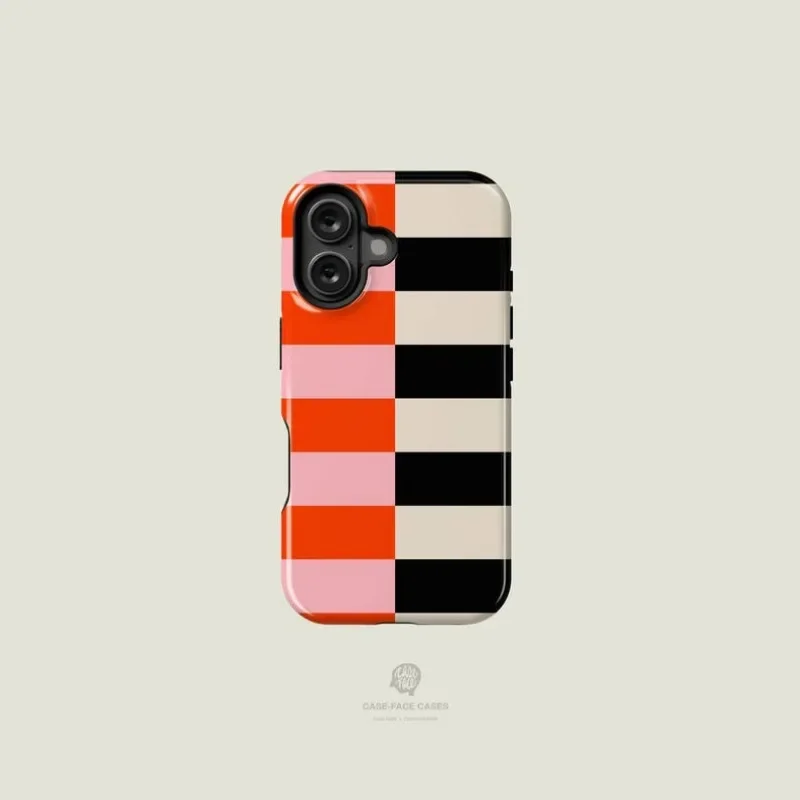 Striped Pink, Orange, Black Case For IPHONE 16ProMax 15 14 13 12 11 PRO Plus Acrylic TPU Two in one Magnetic Phone Cases