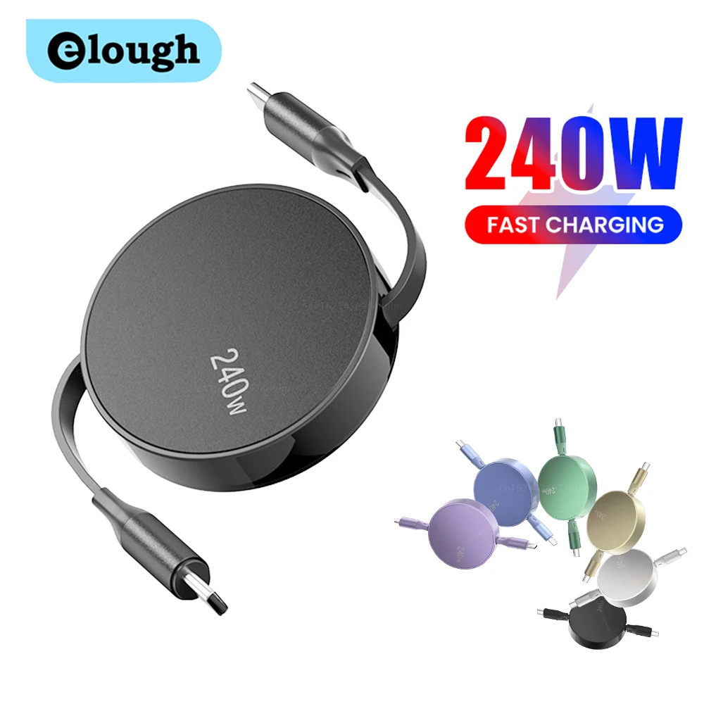 Elough 65W Super Fast Charge USB Type C Charger With Retractable USB C Cable For iPhone 16 Samsung Laptop EU/US/UK Plug cargador