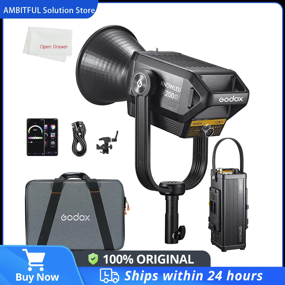 Godox M200D LED Video Light, 5600K 100000LUX CRI 96+ TLCI 97+, Built-in 12 FX Effects for Film, Portrait, Outdoor Shooting