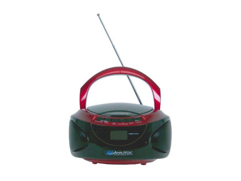 AmpliVox CD Boombox with Bluetooth Red SL1015. Its modern futuristic design highlights the top-loading CD player that plays audio CDs and MP3 CDs. Input connector for headphone/earphone and Auxiliary connector for other audio devices. Can also be...