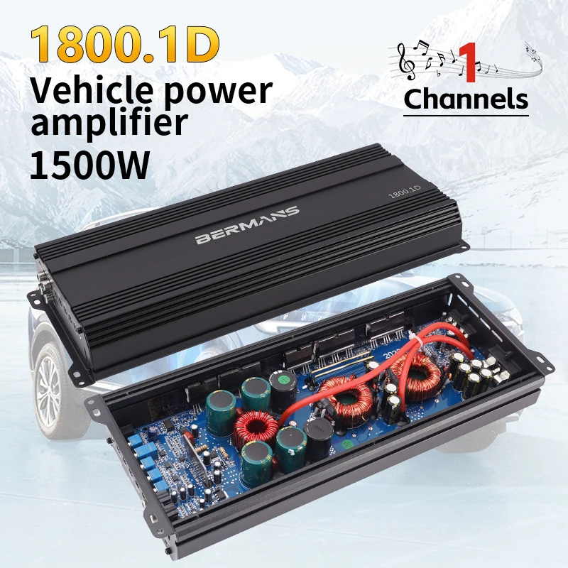 Car Max 1500W single-channel car audio amplifier, low distortion, smooth sound quality, Class D high-power car power amplifier,