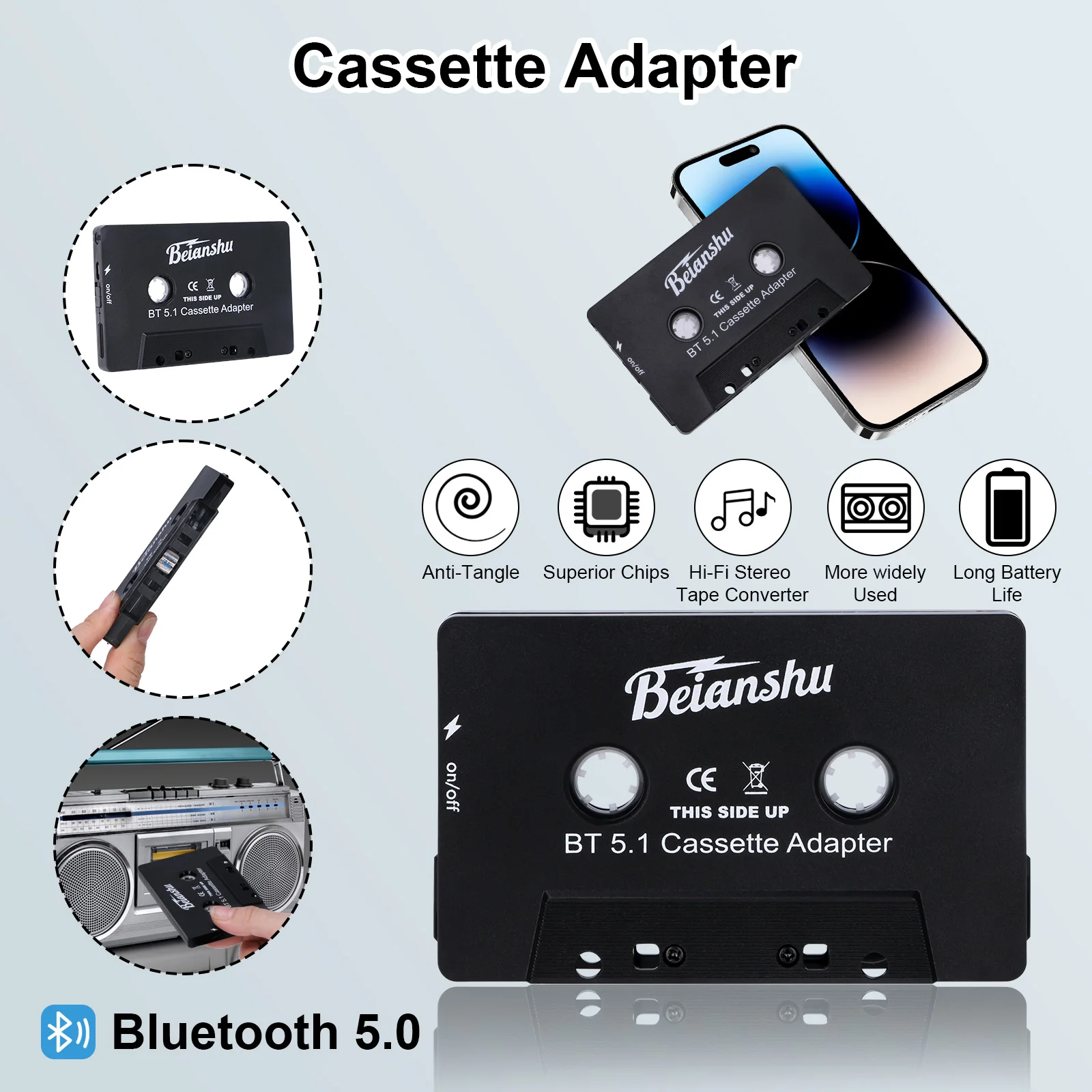 New Volume Control Bluetooth 5.0 car audio stereo tape, Car Bluetooth tape, car MP3 player, hands-free phone book for iPhone