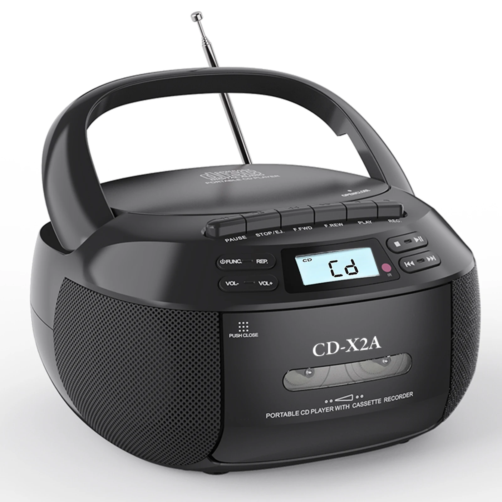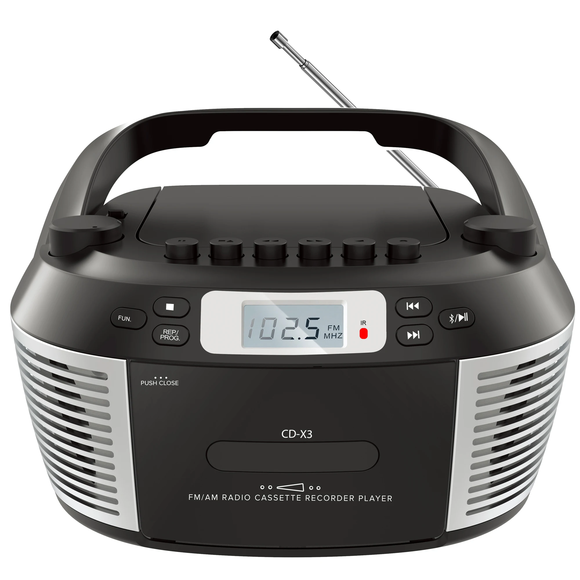CD cassette boomox portable cd tape player combo with Bluetooth AM FM radio, plays AUX USB MP3 with remote control, AC/DC powered