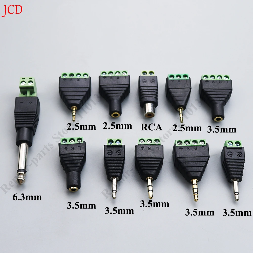 1 Piece 2.5/3.5mm/6.3mm RCA 3 4 Pole Stereo TRRS Audio Video Male Plug To 3Pin 4Pin Screw Terminal Connector Adapter Female