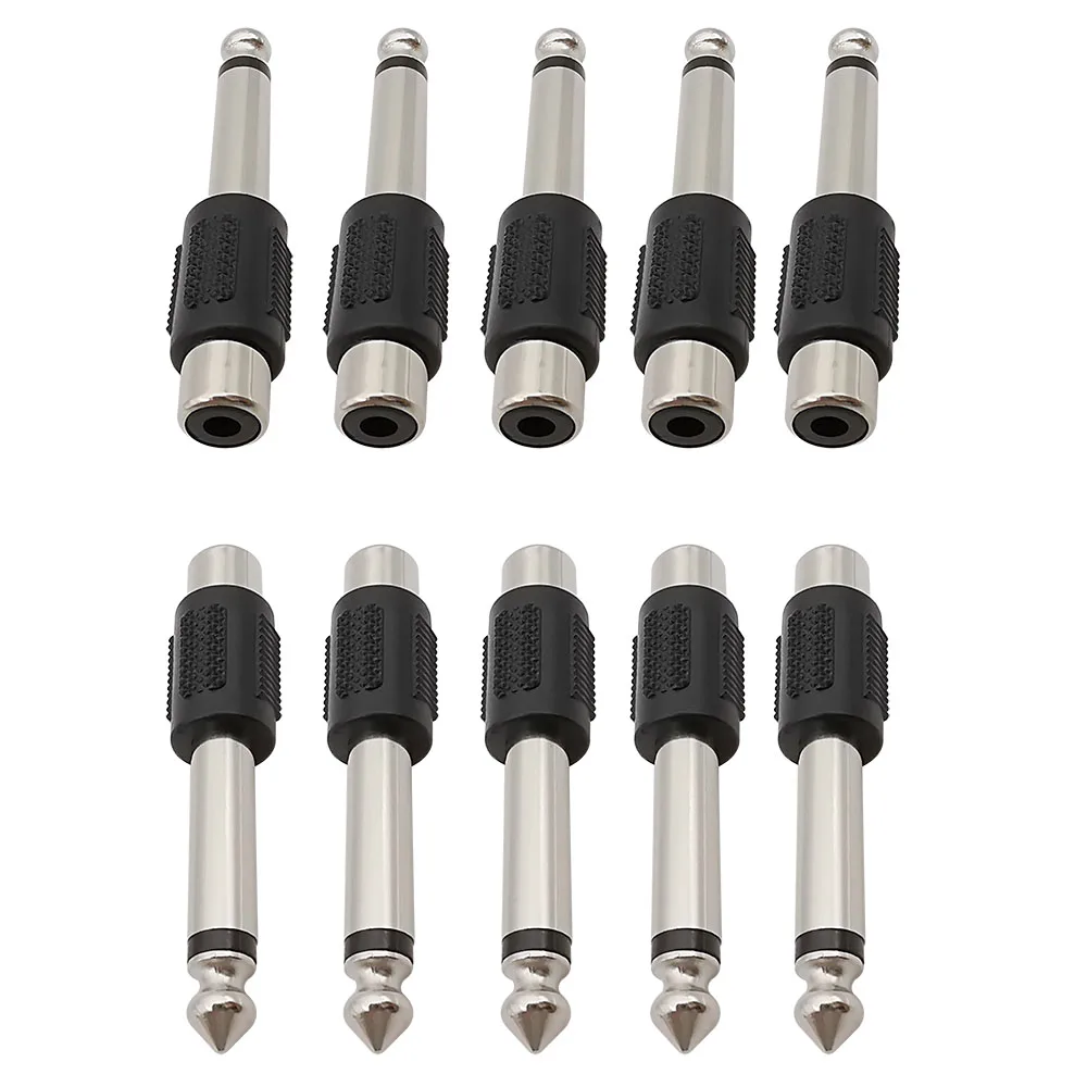 10Pcs RCA Female Jack to 6.35mm 1/4inch Mono Male Plug Audio Adapter Connector for DIY Headphone FM Microphone