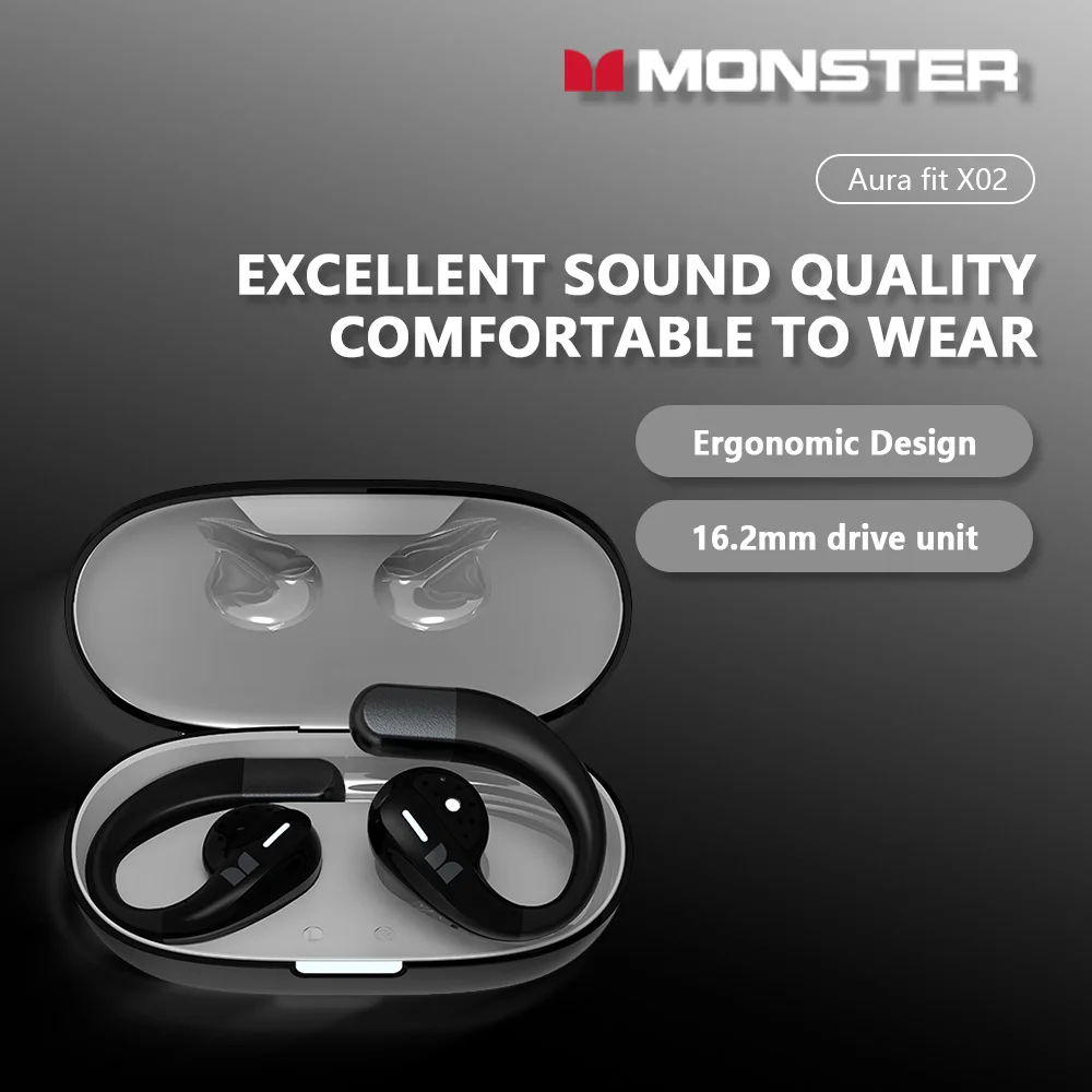 Monster AURA FIT X03 Open Bluetooth Headphones BT5.4, Bionic Cochlear Design, Suitable For Business Office, Study And Sports
